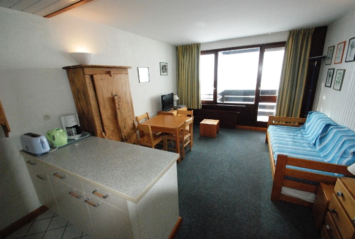 Schuss 204 Tignes Eingangsbereich mit Klappetagenbett für 2 Personen; Wohnzimmer mit 2 Couchausziehbetten, Kabel-TV; Kochnische mit Herd,...Preis pro Person inkl. Skipass ab 647,-